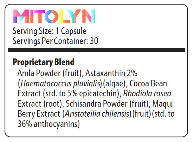 Inside every Mitolyn capsule is a unique proprietary blend of 6 natural plants and nutrients desgined to support healthy weight loss and promote mitochondria.